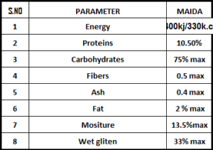 Maida is used extensively for making fast food, baked goods such as pastries, bread, several varieties of sweets, and traditional flatbread and Pizza.